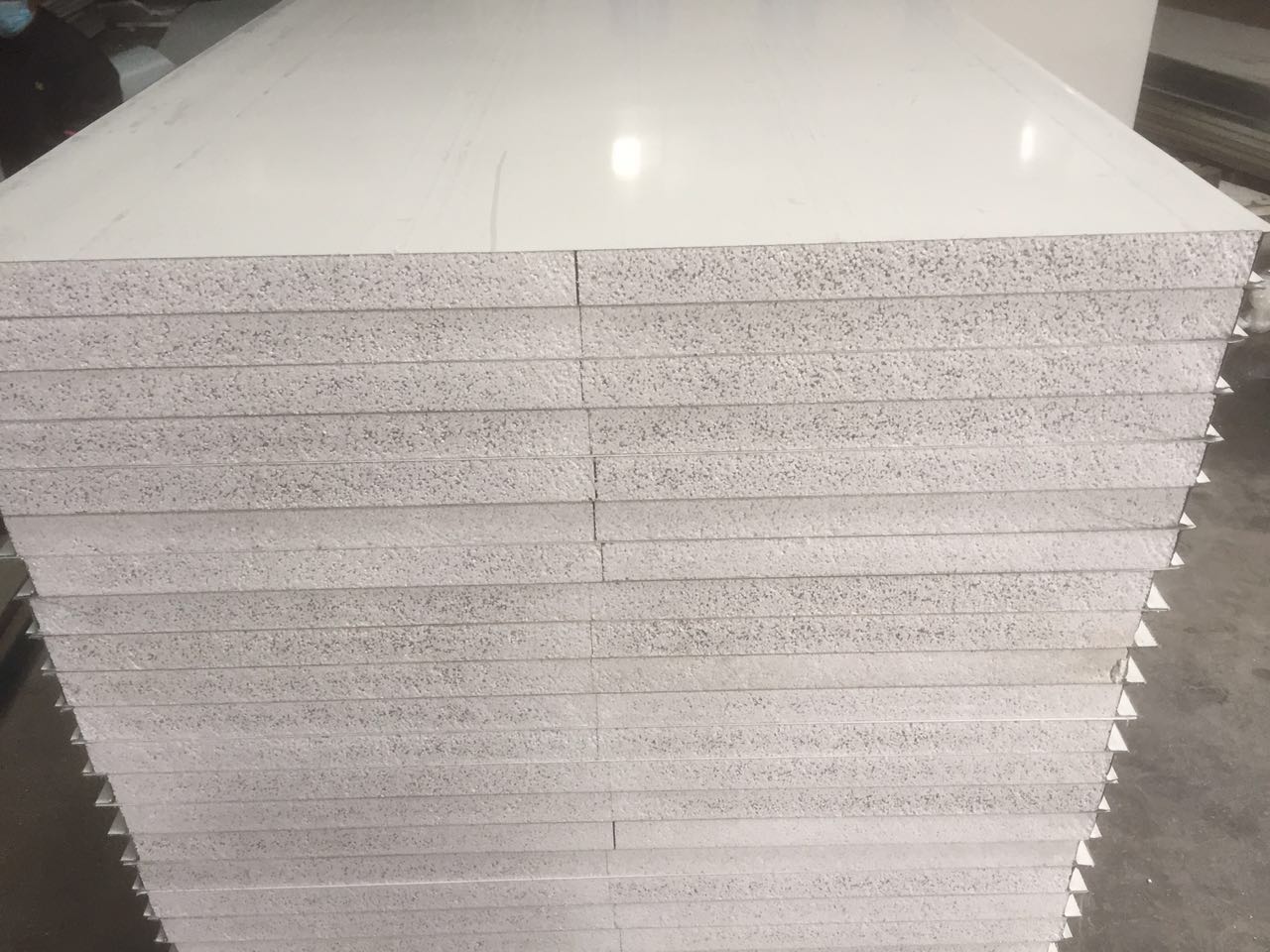 手工復(fù)合板,兩面采用彩涂鋼板,芯材采用無機(jī)質(zhì)玻鎂板、巖棉,四周采用鐵質(zhì)龍骨框或鋁合金冷拉型雌雄口框, 產(chǎn)品具有表面美觀、隔音、絕熱、保溫、抗震,防火性能符合國家準(zhǔn)。